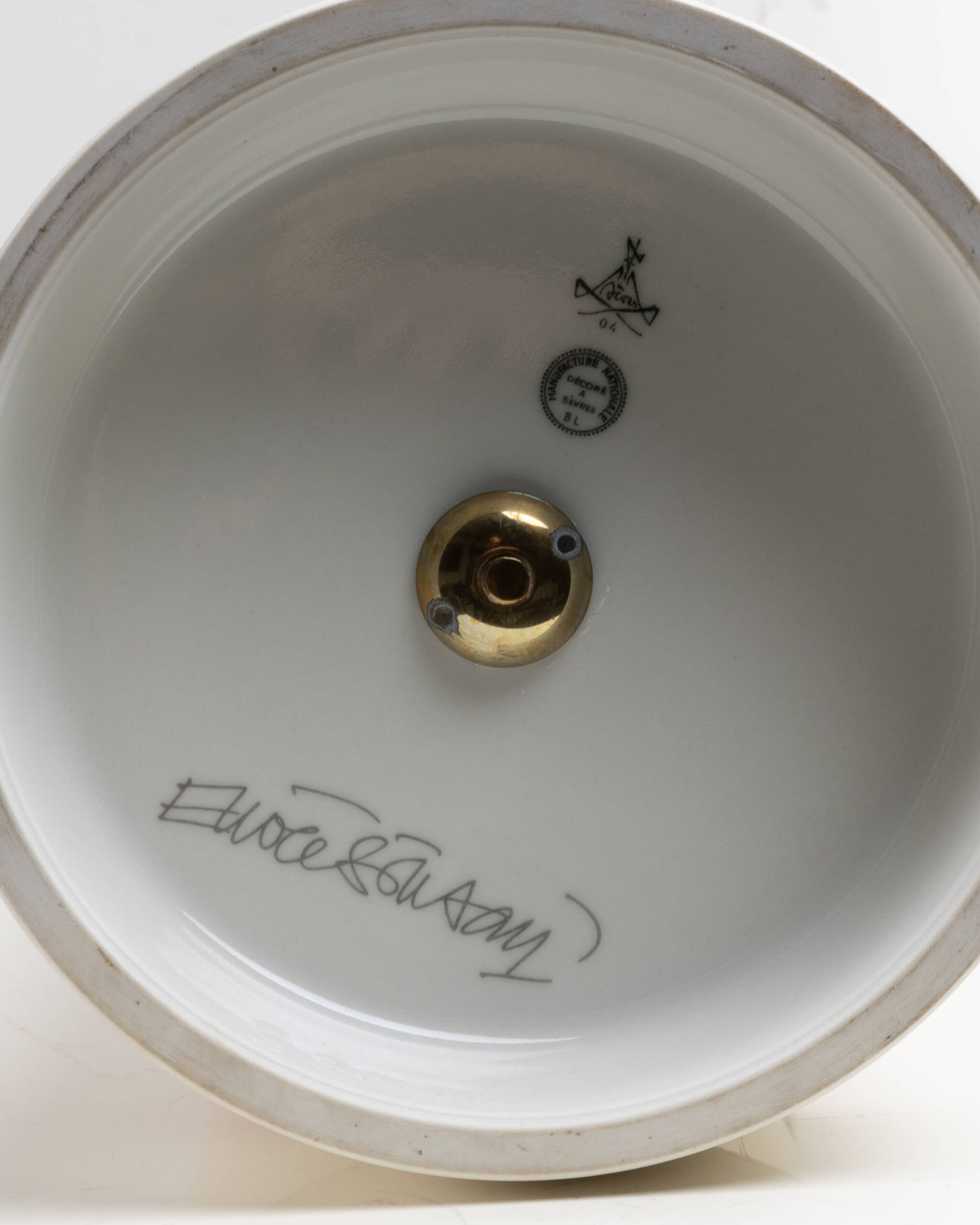 Lit. : Ettore Sottsass – Sèvres, les temps d’un voyage ; Series: Couleurs contemporaines – Les Cahiers – Publisher: Bernard Chauveau Éditeur | Bears the manufacture’s mark (dated ’04), the decorator’s mark (monogram BL), and Ettore Sottsass’s signature, along with the impressed shape number. | Very good condition, accompanied by its original box.