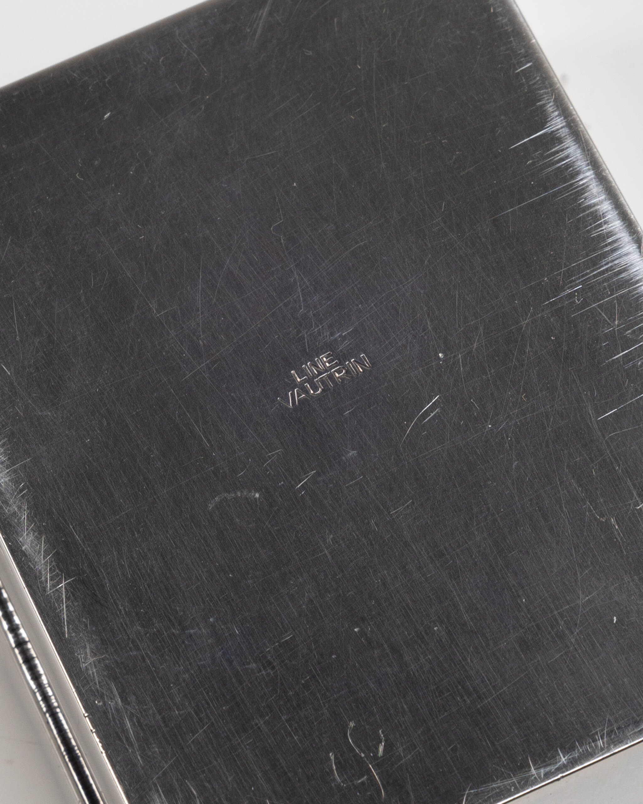 Line Vautrin, Rébus, id., n. 9 pour le dessin du modèle – Secret de bijoux, Line Vautrin, id., p. 26, n. 17| Signature estampée au revers « LINE VAUTRIN » | Très belle patine, bel état, intérieur garni de liège.